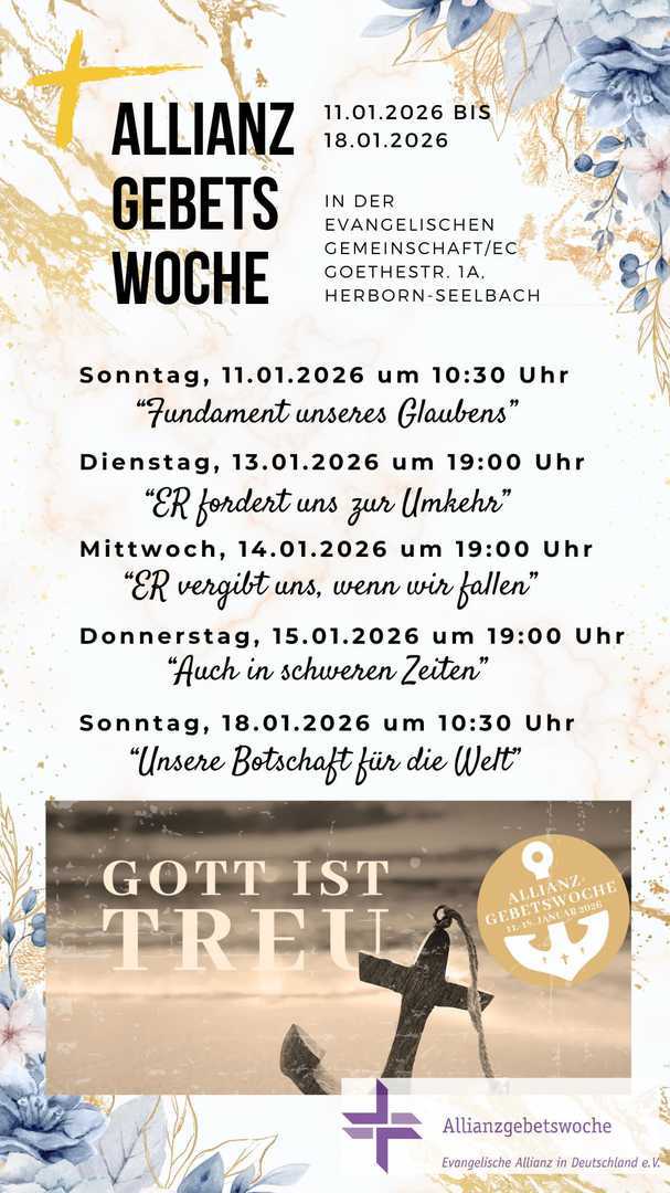Hier finden Sie alle Termine und Informationen zu unseren Gottesdiensten, Gruppen und weiteren Veranstaltungen in unserem Gemeinschaftshaus. Schauen Sie sich also gerne um.